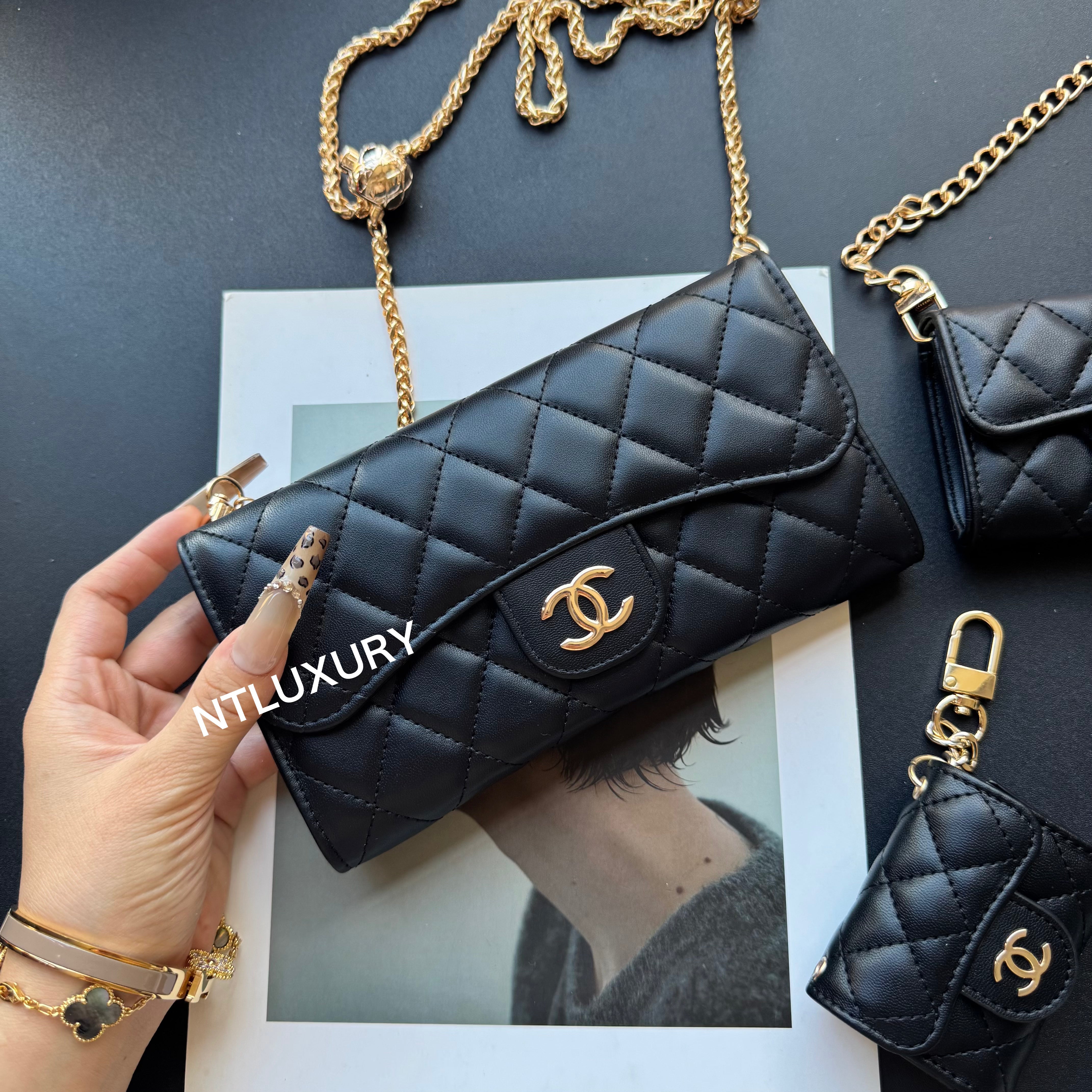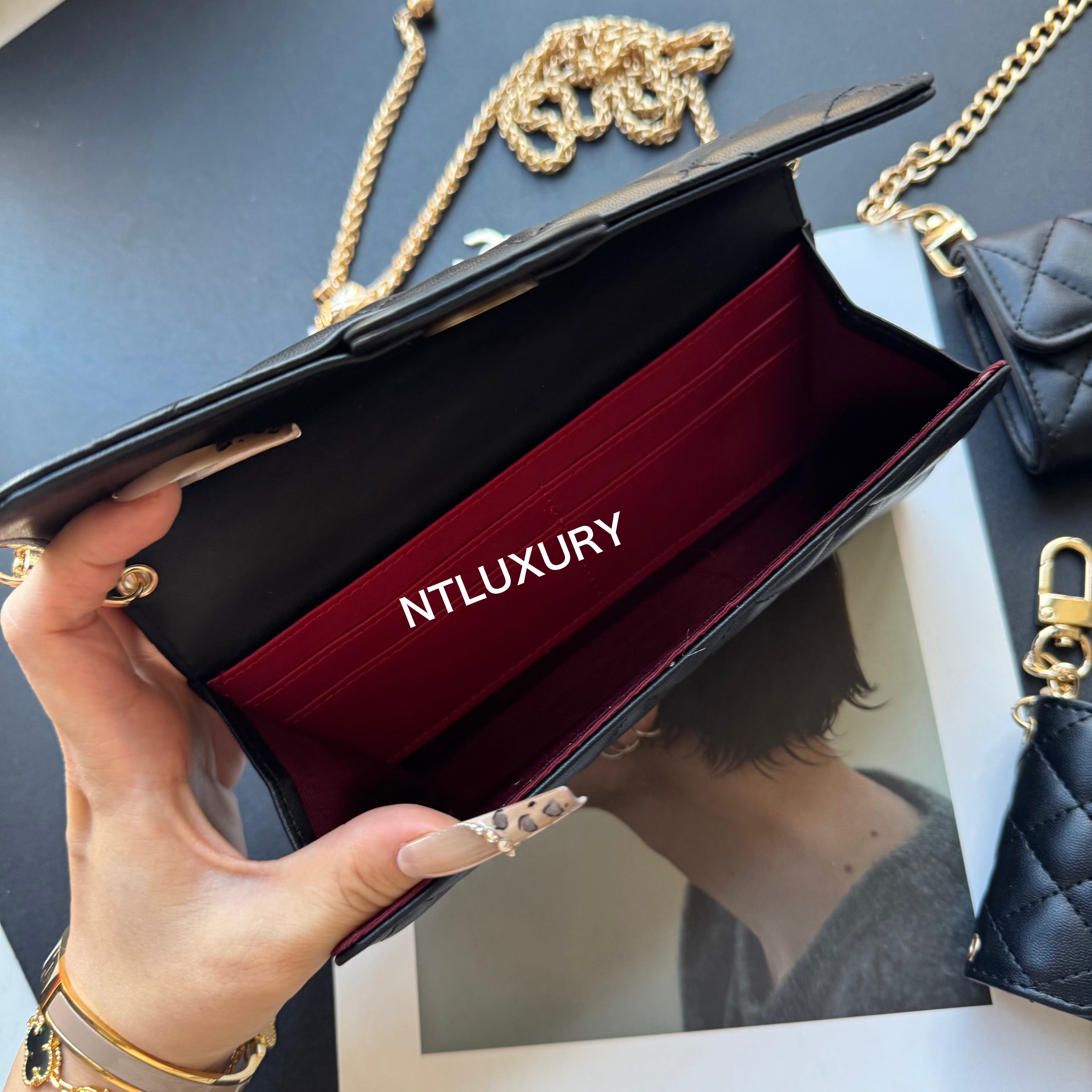 Measuring 190mm x 105mm, the large bag comes with an adjustable long chain strap, making it versatile for both handheld and shoulder carry. Its spacious interior is perfectly sized to hold a smartphone, multiple cards, a lipstick, and other daily essentials, offering both practicality and style for everyday use.