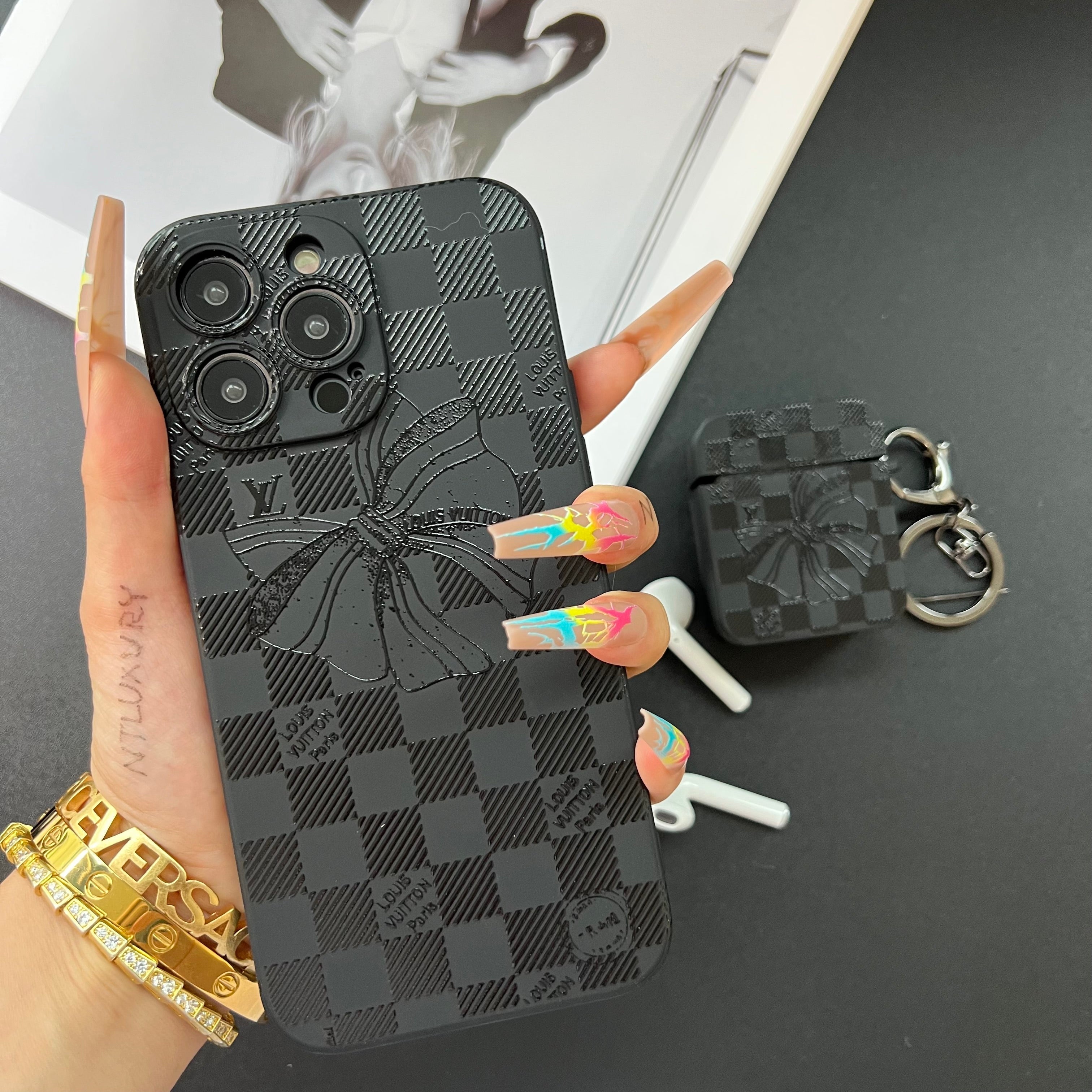 Black Trendy Airpods Case (Bowknot Love )