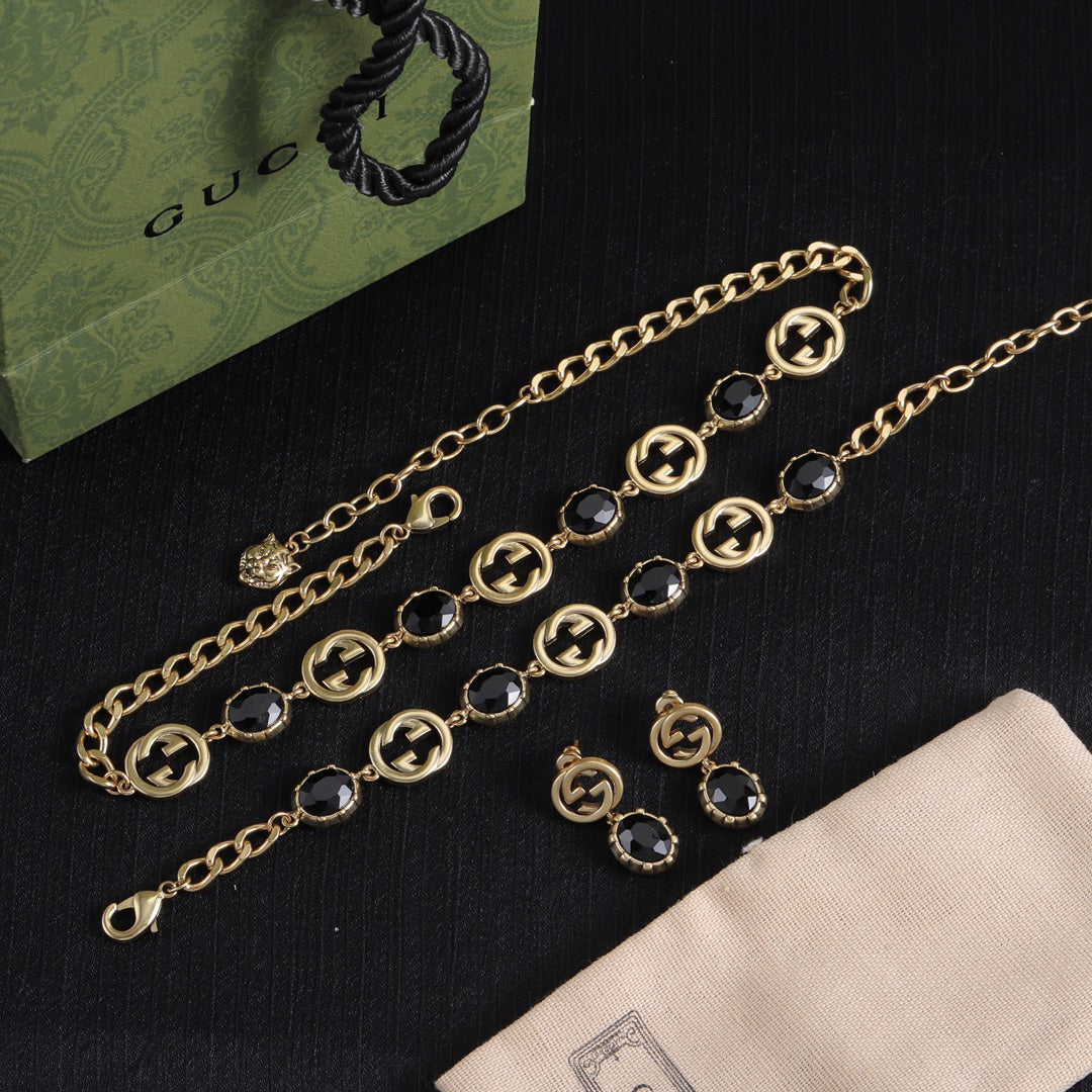 Good Fancy Design Bracelet & Earrings & Necklace (Black)
