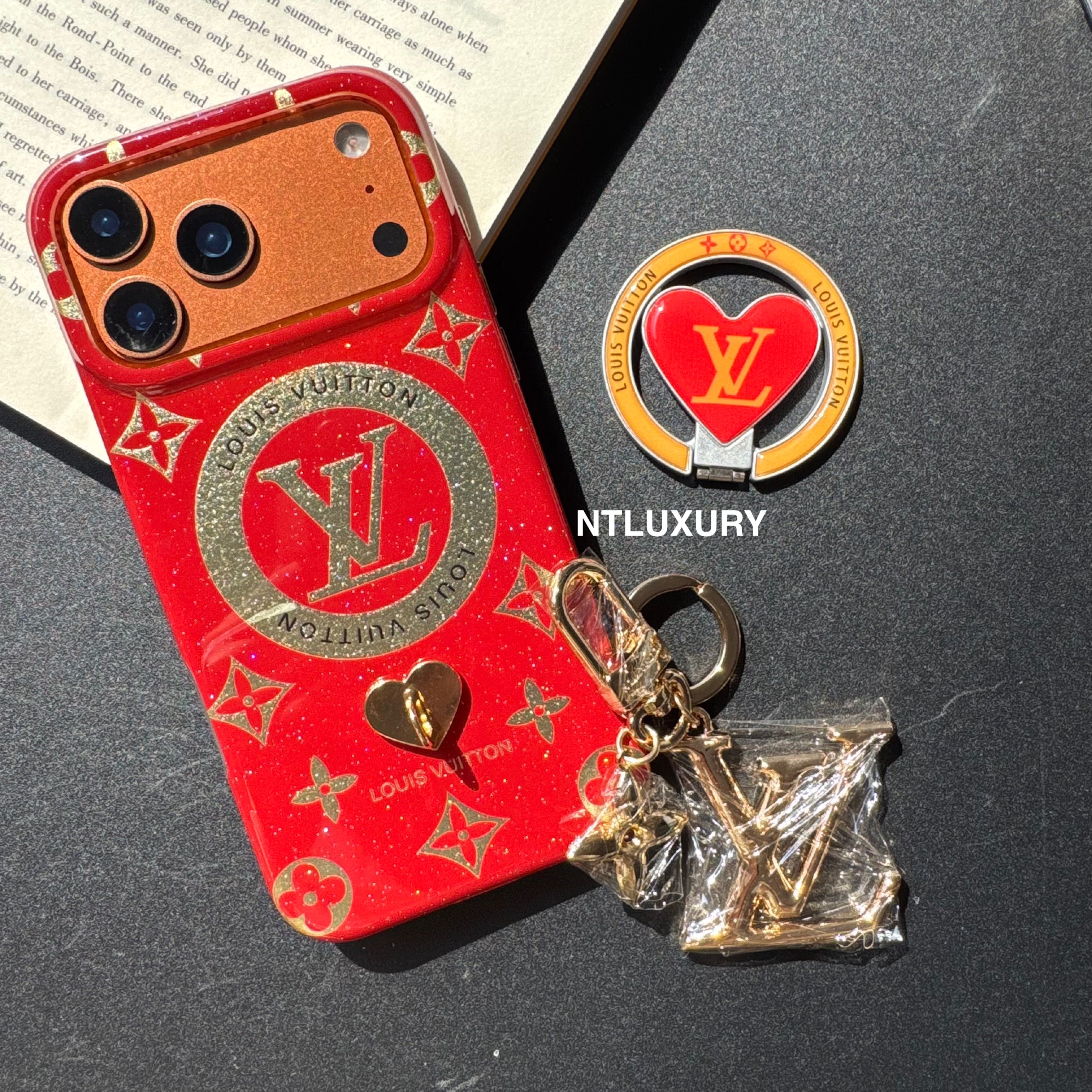 Orange & Red Gliiter Love Phone Case with Magsafe Holder & Pendant (3 Set)